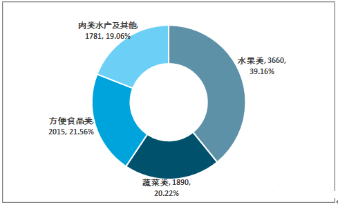2018年我國(guó)凍干食品需求量約9346噸,其中,水果類3660噸;蔬菜類1890噸;方便食品類2015噸;肉類水產(chǎn)及其他1781噸。