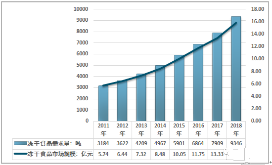 2011-2018年中國(guó)凍干食品行業(yè)需求市場(chǎng)情況