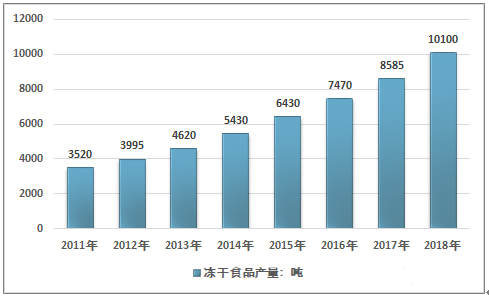 2011-2018年中國(guó)凍干食品行業(yè)產(chǎn)量情況