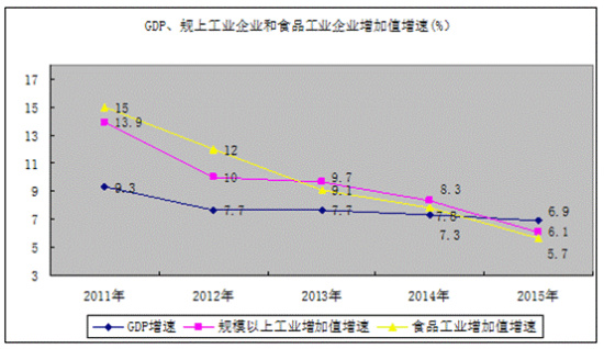 “十二五”期間,在后期國內(nèi)經(jīng)濟(jì)下行壓力加大、增速放緩的形勢下,全國食品工業(yè)認(rèn)真落實(shí)中央加強(qiáng)和改善宏觀調(diào)控,堅(jiān)持“穩(wěn)中求進(jìn)”的總方針,順應(yīng)市場變化,推進(jìn)結(jié)構(gòu)調(diào)整,生產(chǎn)平穩(wěn)增長,產(chǎn)業(yè)規(guī)模繼續(xù)擴(kuò)大,經(jīng)濟(jì)效益持續(xù)提高,組織結(jié)構(gòu)不斷優(yōu)化,區(qū)域食品工業(yè)協(xié)調(diào)發(fā)展,食品安全形勢總體向好。