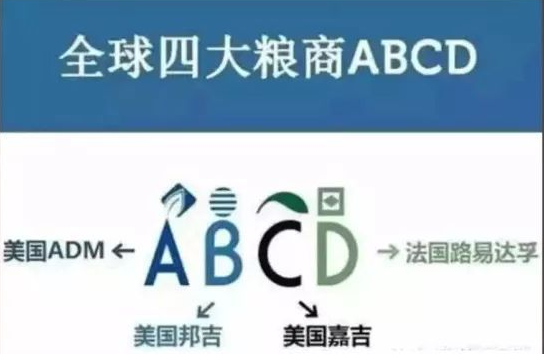 國(guó)際四大糧商是指美國(guó)ADM、邦吉(Bunge)、嘉吉(Cargill)和法國(guó)路易·達(dá)孚(LouisDreyfus)四大跨國(guó)公司,根據(jù)英文名字首字母,人們將其簡(jiǎn)為“ABCD”。四大糧商都是擁有百年以上歷史的跨國(guó)糧商,目前世界糧食交易量的80%都?jí)艛嘈缘乜刂圃谶@四大糧商手中,“只有他們可以定價(jià)。”