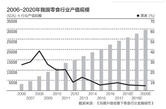 報告預(yù)計到2020年,零食行業(yè)總產(chǎn)業(yè)規(guī)模預(yù)計接近3萬億元。相較當前中國休閑零食銷售情況,市場遠未飽和,增長空間巨大。 休閑零食是人們除了一日三餐,最常購買的食品。伴隨著中國產(chǎn)業(yè)與消費的雙升級,生活方式與生活理念主導(dǎo)的新方向確立。 休閑零食業(yè)態(tài)出現(xiàn),工業(yè)技術(shù)和產(chǎn)品品質(zhì)大幅提升,行業(yè)監(jiān)管也日趨成熟,整體市場規(guī)模持續(xù)擴大。 曾經(jīng)休閑零食線下零售受限于生產(chǎn)原材料、產(chǎn)品品類和消費者偏好的地域性差異,以及品牌銷售的區(qū)域性布局,市場競爭較充分,行業(yè)整體集中度偏低。 而現(xiàn)在,在電商爆發(fā)階段,線上零售渠道的快速發(fā)展成為推動我國零食產(chǎn)業(yè)轉(zhuǎn)型與快速發(fā)展的重要動力。 得益于互聯(lián)網(wǎng)爆款思維和品牌效應(yīng),線上行業(yè)集中度明顯高于線下。
