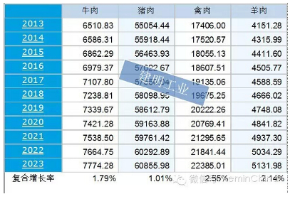 2015-2023 中國未來十年肉類生產(chǎn)展望經(jīng)合組織和聯(lián)合國糧農(nóng)組織共同發(fā)布的“中國農(nóng)業(yè)展望報告”,已經(jīng)為中國未來10年(2014-2023)的畜牧業(yè)進行了估測,建明小J不敢獨享,特將數(shù)據(jù)進行統(tǒng)計分析,與行業(yè)共同進步。 本次展望數(shù)據(jù),是經(jīng)合組織2014年完成了“中國經(jīng)濟發(fā)展報告”之后,進行的分項分析,其中對肉類的數(shù)據(jù)展望,都是根據(jù)中國經(jīng)濟變遷的趨勢,有關(guān)消費因素的調(diào)查之后進行的分析。建明小J據(jù)此進行了簡要分析。 -肉類平均年增速不超過1.5% -禽肉未來增長率最高 經(jīng)合組織和聯(lián)合國糧農(nóng)組織共同發(fā)布的“中國農(nóng)業(yè)展望報告”,已經(jīng)為中國未來10年(2014-2023)的畜牧業(yè)進行了估測,建明小J不敢獨享,特將數(shù)據(jù)進行統(tǒng)計分析,與行業(yè)共同進步。 本次展望數(shù)據(jù),是經(jīng)合組織2014年完成了“中國經(jīng)濟發(fā)展報告”之后,進行的分項分析,其中對肉類的數(shù)據(jù)展望,都是根據(jù)中國經(jīng)濟變遷的趨勢,有關(guān)消費因素的調(diào)查之后進行的分析。建明小J據(jù)此進行了簡要分析。 1 豬肉年均增長率1.01% 到2023年,中國豬肉產(chǎn)量將達(dá)到6086萬噸,比2013年增長約580萬噸。根據(jù)復(fù)合增長率來計算,中國未來十年,豬肉產(chǎn)量的增長非常緩慢,約1.01%,這要比未來的GDP增長率低得多。 建明小J認(rèn)為,這不僅僅是中國經(jīng)濟緩慢增長的信號,更是養(yǎng)豬產(chǎn)業(yè)、豬飼料產(chǎn)業(yè)緩慢增長的信號。養(yǎng)豬業(yè)、飼料業(yè)勢必進入深度調(diào)整期。 今后,養(yǎng)豬業(yè)、飼料業(yè)將不再是以量取勝的時代。 2 禽肉增長率2.55% 這是畜禽養(yǎng)殖業(yè)中復(fù)合增長率最好的產(chǎn)業(yè),禽肉雖然連年蕭瑟,但是隨著中國人的消費習(xí)慣不斷改變,建明小J認(rèn)為,禽肉繼續(xù)增長是非常準(zhǔn)確的判斷。 2023年,禽肉產(chǎn)量將達(dá)到2238萬噸,比2013年增長498萬噸,增長量幾乎與豬肉持平(豬肉2013年基礎(chǔ)量要高得多)。 3 牛肉、羊肉增長率分別為1.79%和2.14% 牛羊肉也不會有大幅度的增長,因此中國牛羊肉價格長期高企不下的現(xiàn)狀,估計也難得到改善。 4 全球角度看中國 未來十年,世界畜禽產(chǎn)業(yè)也處于緩慢增長狀態(tài),豬肉、禽肉以及牛羊肉的平均復(fù)合增長率為1.61%,略微高于中國的1.45%。這一數(shù)據(jù),顯示的是經(jīng)合組織對中國畜禽產(chǎn)業(yè)的悲觀評估。他們認(rèn)為,中國畜禽業(yè)高速發(fā)展的時代已經(jīng)過去。 由于中國禽肉和牛肉的消費遠(yuǎn)遠(yuǎn)不如歐美國家,因此經(jīng)合組織認(rèn)為這一領(lǐng)域還會有一些高于全球的增長,而豬肉和羊肉生產(chǎn)與消費則會低于全球。 對本文數(shù)據(jù)準(zhǔn)確性,建明小J認(rèn)為,這是對未來中國經(jīng)濟形勢的基本判斷,形成的數(shù)據(jù),即使估測不夠準(zhǔn)確,也能在其中看到經(jīng)合組織對中國經(jīng)濟的基本判斷。而本數(shù)據(jù)也是得到經(jīng)合組織成員國——中國的積極參與,最終形成的數(shù)據(jù)。建明微信號Keminchina未來還會分析全球的情況,敬請關(guān)注。 總而言之,小J重復(fù)之前的話:中國畜禽養(yǎng)殖,已經(jīng)進入深度調(diào)整期,競爭層面已經(jīng)從數(shù)量,進入到質(zhì)量、服務(wù)、技術(shù)、品牌等領(lǐng)域的綜合競爭。 來源:建明工業(yè) 【 關(guān)閉窗口 】 |