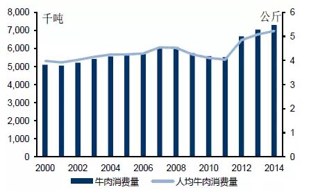 2016年中國牛肉行業(yè)現(xiàn)狀及預(yù)測牛肉營養(yǎng)價值豐富。相比于豬肉而言,牛肉的蛋白質(zhì)含量高,脂肪和膽固醇含量較低,組成更接近人體需要,容易消化吸收,能提高機體抗病能力。目前,牛肉已經(jīng)成為我國主要肉類食品之一。 一、中國肉牛市場現(xiàn)狀分析 中國人均牛肉消費量與世界平均消費量對比圖 城鎮(zhèn)消費為主,農(nóng)村占比不斷上升。2010 年農(nóng)村居民牛肉消費量僅占國內(nèi)牛肉消費總量的20%,城鎮(zhèn)居民人均牛肉消費量是農(nóng)村居民的4 倍左右,城鎮(zhèn)居民是國內(nèi)牛肉消費的主力軍。隨著農(nóng)村經(jīng)濟發(fā)展以及人均收入的提升,2012 年農(nóng)村牛肉消費量占比提升至24%,城鎮(zhèn)農(nóng)村人均牛肉消費量之比下降到3 倍,國內(nèi)牛肉消費仍以城鎮(zhèn)為主,農(nóng)村消費需求正不斷上升。 2、目前市場上牛肉供應(yīng)主要由國內(nèi)、進口、走私三部分組成。我國牛肉消費主要由國內(nèi)產(chǎn)量滿足,但近年來由于養(yǎng)殖成本、價格差異等原因,進口牛肉量增長較快,但整體占比仍偏低。此外,由于國內(nèi)外牛肉價差巨大,走私牛肉有暴利可圖,不少走私牛肉流入我國市場,走私牛肉約占國內(nèi)牛肉總供應(yīng)量的30%左右。 國內(nèi)牛肉產(chǎn)量增長穩(wěn)定,年復(fù)合增速在2%左右,主要供應(yīng)國內(nèi)市場。我國是世界第三大牛肉生產(chǎn)國。2014 年我國國內(nèi)牛肉產(chǎn)量達到689.24 萬噸,占世界牛肉總產(chǎn)量的15%,相比于2006 年576.67 萬增長19.5%,年復(fù)合增速在2%左右,連續(xù)近10 年保持平穩(wěn)增長態(tài)勢。2014 年我國國內(nèi)牛肉產(chǎn)量只有10%左右約69 萬噸出口,絕大多數(shù)產(chǎn)量用來滿足國內(nèi)需求。 2015年1-12月中國牛肉出口數(shù)量為4702噸,同比下降27.6%;2015年1-12月中國牛肉出口金額為44721千美元,同比下降70.1%。2015年1-12月中國牛肉出口量統(tǒng)計表如下表所示: 來源:進口肉類咨詢 【 關(guān)閉窗口 】 |