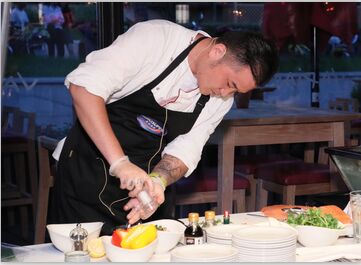 主廚Leo為來賓現(xiàn)場(chǎng)展示酸橘汁腌三文魚的制作過程