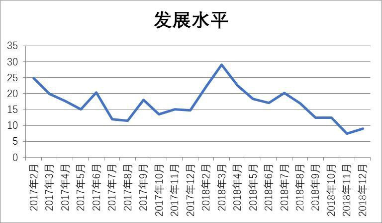 2018年全年食品工業(yè)整體運行平穩(wěn),在第一季度小幅增長后有所回落,下半年維持平穩(wěn)。 食品工業(yè)經(jīng)濟運行指數(shù)又分為五個分指數(shù): 1、發(fā)展水平