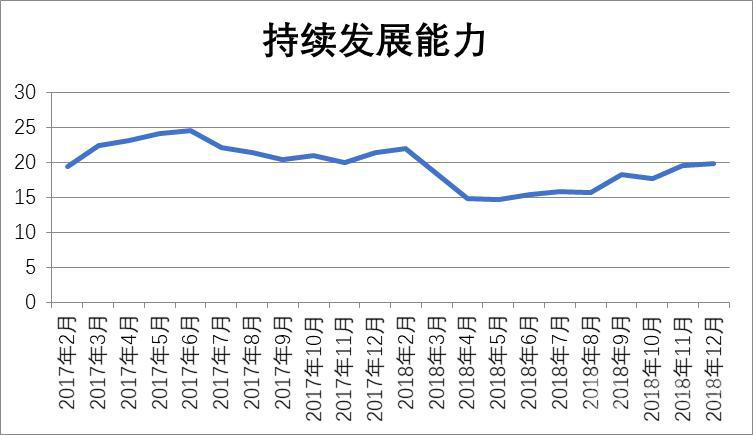 2018年食品工業(yè)持續(xù)發(fā)展能力平穩(wěn)增長,受出口下滑的影響,第一季度該指數(shù)有所下降,第二季度維持平穩(wěn),下半年有所增長,到12月該指數(shù)基本回到去年末水平。