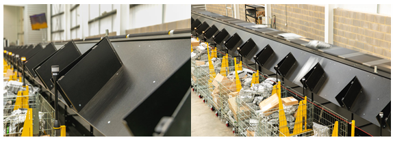 每小時(shí)分揀4,000個(gè)包裹 由于倉(cāng)庫(kù)新區(qū)域的可用空間有限,分揀系統(tǒng)必須盡可能緊湊,但仍需滿(mǎn)足每小時(shí)分揀4,000個(gè)包裹的要求。因此,分揀機(jī)滑槽都被配置為僅在同一側(cè)卸貨,從而實(shí)現(xiàn)了最佳的空間利用效果。在安裝分揀機(jī)之前,L.A.C.公司已經(jīng)安裝了一套帶有索引標(biāo)記的皮帶式輸送機(jī),以確保初始的包裹間隔。隨后,包裹會(huì)經(jīng)過(guò)掃描,收集每件物品的重量和體積信息。