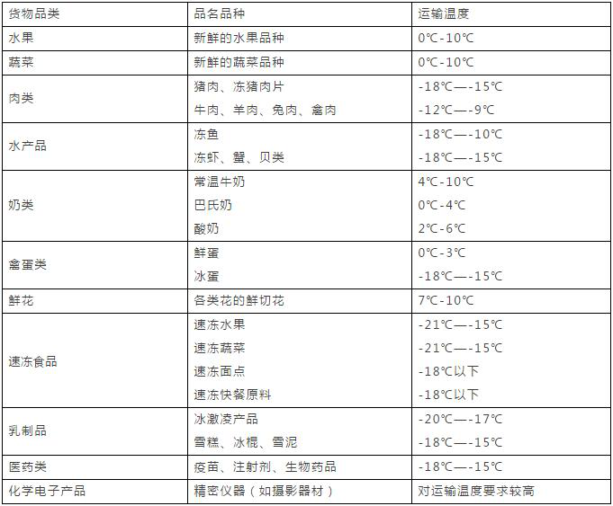 目前,冷鏈物流的適用商品一般分為三類:一是初級農(nóng)產(chǎn)品,包括蔬菜、水果、肉、禽、蛋、水產(chǎn)品、花卉等;二是加工后的食品,如速凍食品、肉、水產(chǎn)、熟食、冰激凌和奶制品等;三是特殊商品,如藥品和疫苗。和傳統(tǒng)物流相比,冷鏈物流在每一個環(huán)節(jié)上對技術(shù)的要求更高,資金投入也更大,已是國家重點(diǎn)扶持的領(lǐng)域。冷鏈物流的核心不完全是“冷”,而是“恒溫”,因為不同的產(chǎn)品需要不同的保存溫度(見表2)。