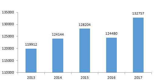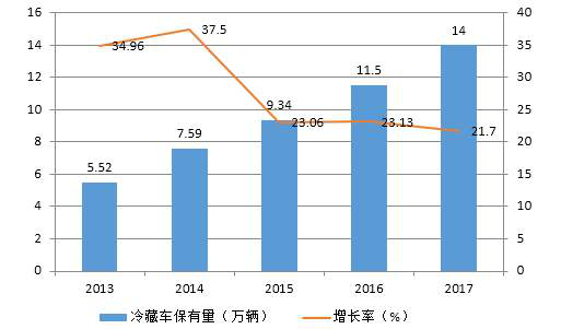 圖4 2013-2017年全國冷藏車保有量增長變化圖