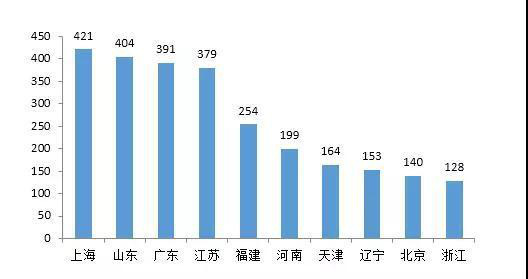 圖6 2017年全國冷庫容量城市TOP10(單位:萬噸)