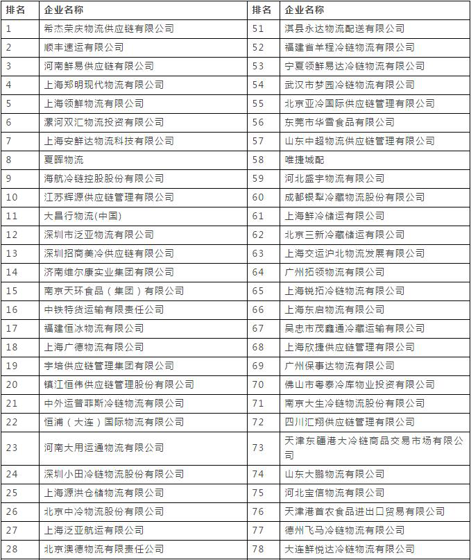 表7 2017中國冷鏈物流企業(yè)百強(qiáng)名單