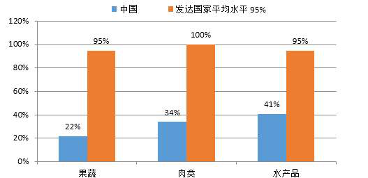 圖9 中國與發(fā)達(dá)國家冷鏈流通率比較