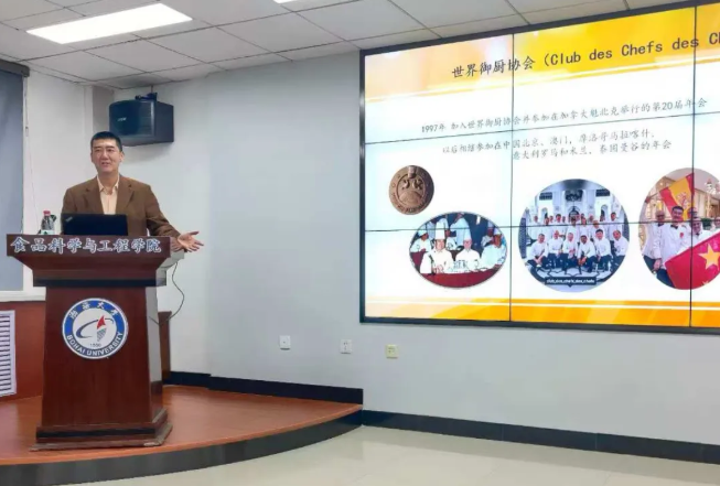 儀式結(jié)束后,徐龍大師圍繞主題“探索餐桌上的文化世界”為在場(chǎng)師生帶來了一場(chǎng)長(zhǎng)達(dá)三小時(shí)的專題分享。分享內(nèi)容緊扣食品前沿動(dòng)態(tài),涵蓋理論創(chuàng)新與實(shí)踐案例,深入淺出,引人深思。在互動(dòng)環(huán)節(jié)中,師生踴躍提問,徐龍大師逐一細(xì)致解答,現(xiàn)場(chǎng)氣氛熱烈,學(xué)術(shù)交流氛圍濃厚。