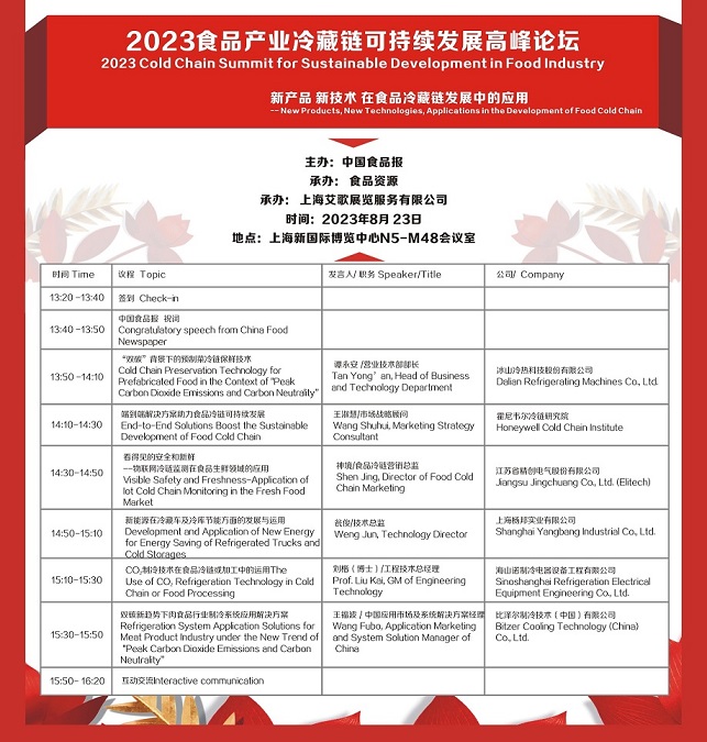 2023食品產(chǎn)業(yè)冷藏鏈可持續(xù)發(fā)展高峰論壇 2023 Cold Chain Summit for Sustainable Development in Food Industry