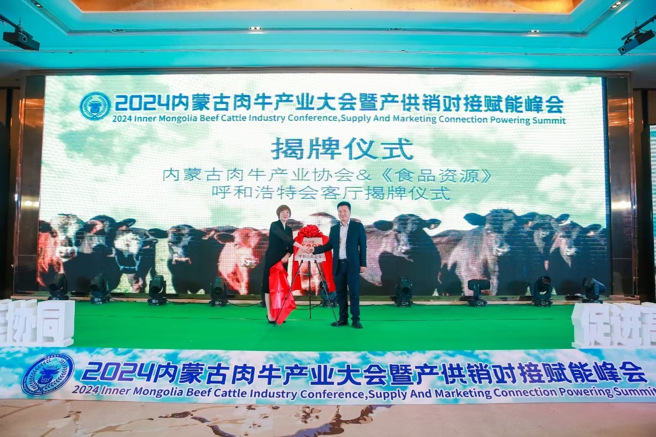 2024年5月23日上午,《食品資源》呼和浩特會客廳揭牌儀式在來自肉牛產(chǎn)業(yè)上下游的專家、學(xué)者、牧場、餐飲、屠宰場深加工代表以及行業(yè)精英等近660多人的共同見證下,由內(nèi)蒙古肉牛產(chǎn)業(yè)協(xié)會張廣志秘書長、《食品資源》趙明社長共同為“呼和浩特會客廳”揭牌。