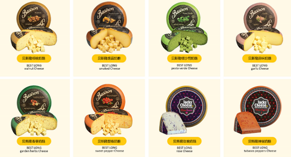 同樣具有高品質(zhì),以及高溢價的展品還有蜚聲歐美的貝斯隆奶酪。貝隆斯的藍標、紅標奶酪曾榮獲國際大獎。貝隆斯奶酪是由百麥實商貿(mào)有限公司推出的展品,此次,其登陸SIAL西雅展(深圳)的奶酪產(chǎn)品具有雙重特質(zhì):一方面,奶酪的制造工藝流程極其特殊,整個發(fā)酵過程為微生物轉(zhuǎn)化過程,細菌所產(chǎn)生的酶將使奶酪散發(fā)出吸引人的獨特香味,并形成獨特組織。另一方面,在發(fā)酵的過程中添加各種配料,使奶酪滋生出別具一格的味道,包括貝斯隆香草奶酪、核桃奶酪、胡椒奶酪、松露奶酪、煙熏奶酪等市面上非常少有的產(chǎn)品。