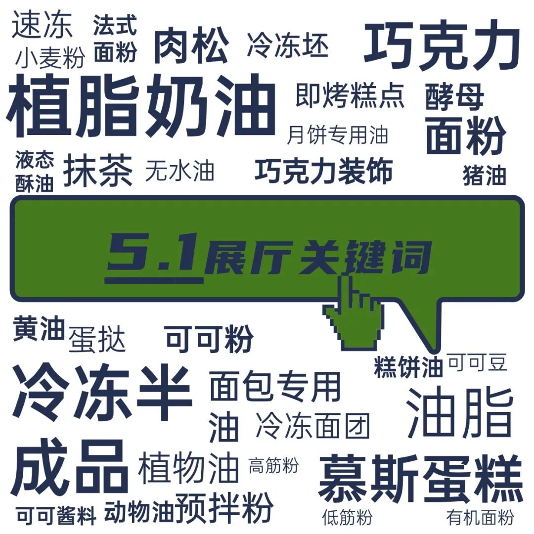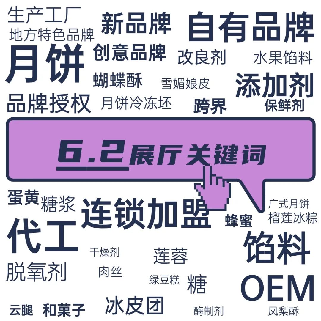 展區(qū)劃分如下: 原料展區(qū):Hall 5.1, 6.1, 7.1, 5.2, 6.2 > 餡料展區(qū):Hall 5.2 > (月餅)OEM與自有品牌展區(qū):Hall 6.2 > 預制烘焙節(jié)與預制烘焙展區(qū):Hall 6.1 > 乳品展區(qū):Hall 7.1 > 添加劑與配料展區(qū):Hall 6.2 > 連鎖加盟展區(qū):Hall 6.2