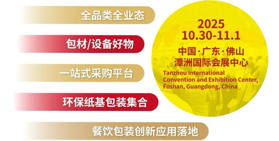 2025中國(guó)餐飲食品包裝加工設(shè)備展2025中國(guó)餐飲食品包裝加工設(shè)備展 2025.10.30-11.1 中國(guó)·廣東·佛山潭洲國(guó)際會(huì)展中心包材+設(shè)備,雙核并聯(lián),1+1>2五展聯(lián)動(dòng),觸達(dá)更多商機(jī) 邀您參與這場(chǎng)包材/設(shè)備好物專業(yè)采購(gòu)盛會(huì)