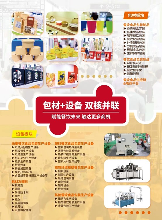 7年之旅走來(lái),深度參與餐飲中國(guó)餐飲食品行業(yè)發(fā)展,中國(guó)餐飲食品包裝&加工設(shè)備展深刻洞悉當(dāng)前餐飲食品產(chǎn)業(yè)復(fù)雜多變的發(fā)展局勢(shì),機(jī)遇、挑戰(zhàn)并存的前景,前瞻性包裝供應(yīng)鏈產(chǎn)業(yè)聯(lián)動(dòng)、協(xié)同的構(gòu)想,群策群力解企業(yè)、品牌的單點(diǎn)困局,賦能餐飲新未來(lái)。在2025年,為了打造可持續(xù)發(fā)展餐的飲食品包裝/設(shè)備供應(yīng)鏈生態(tài)圈,展會(huì)已經(jīng)行動(dòng)起來(lái),布局行業(yè)內(nèi)外“雙聯(lián)動(dòng)、多收益”的新架構(gòu)——2.包材+設(shè)備,雙核并聯(lián),1+1>22025新布局之一,餐飲食品包裝行業(yè)聯(lián)動(dòng)呼之欲出——在鞏固“國(guó)內(nèi)專業(yè)餐飲包材展”的基礎(chǔ)上,中國(guó)餐飲食品包裝&加工設(shè)備展在2025持續(xù)創(chuàng)新,開拓性地引入餐飲食品包裝制造/加工設(shè)備板塊!包材+設(shè)備,展會(huì)在完成升級(jí)的同時(shí),打造雙核心板塊并聯(lián),促進(jìn)產(chǎn)業(yè)鏈上下游聯(lián)動(dòng)協(xié)同,形成1+1>2的多贏效應(yīng)。