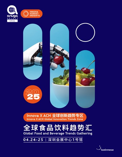Anuga Select China 2025將與食品飲料趨勢研究領(lǐng)域的權(quán)威機(jī)構(gòu)Innova市場洞察合作,共同推出Innova X ACH全球創(chuàng)新趨勢專區(qū)——“2025全球食品飲料趨勢匯”。展會同期將開展一系列圍繞“2025全球食品飲料十大趨勢”的活動,如趨勢發(fā)布、論壇演講、趨勢產(chǎn)品精選展示以及商貿(mào)對接等,為參會者提供解讀趨勢、分享案例和研討合作的絕佳機(jī)會,全方位充實(shí)展會內(nèi)涵,助力行業(yè)實(shí)現(xiàn)更優(yōu)發(fā)展。特別值得一提的是,主辦方將設(shè)立“Innova X ACH 2025食飲趨勢創(chuàng)新先鋒獎”,依據(jù)Innova市場洞察的權(quán)威評選結(jié)果,為獲獎?wù)股潭ㄖ茖僬J(rèn)證,并在展會現(xiàn)場通過場景化展示獲獎產(chǎn)品,全方位提升企業(yè)形象與品牌知名度。